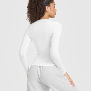 Mellow™ Rib Square Neck Mid Vest with Built in Bra Shelf White