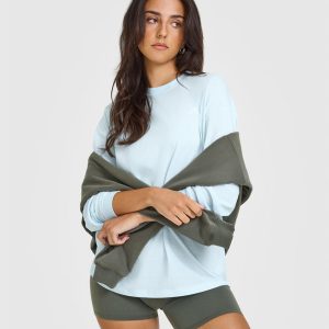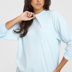 Classic Oversized Lightweight Long Sleeve Top Cloud Blue