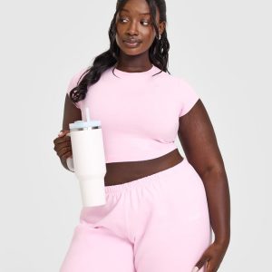 Cotton Icon Baby T-Shirt with White Logo Chalk Pink