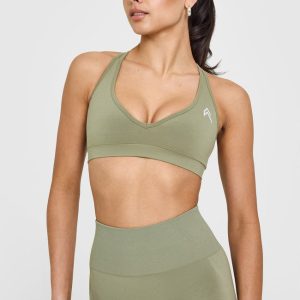 Effortless Seamless Racer Back Sports Bra Deep Sage Green