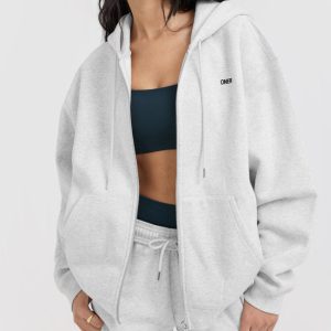 Foundations Zip Through Hoodie Light Grey Marl