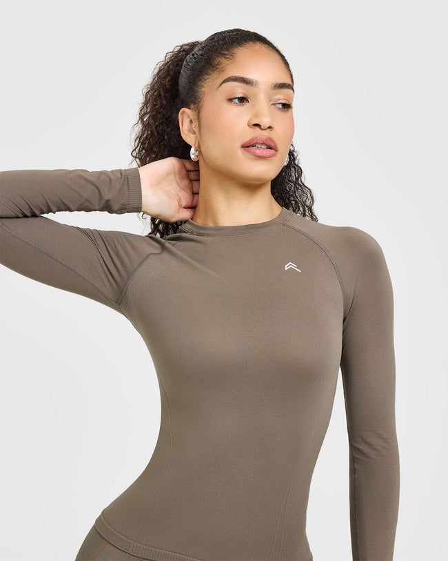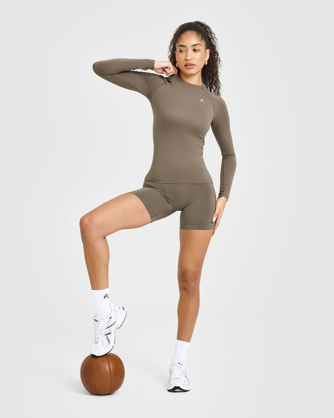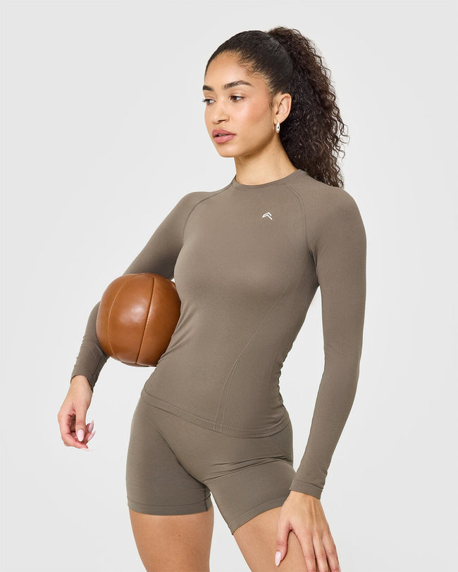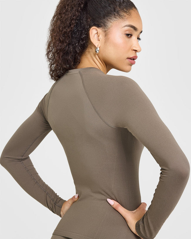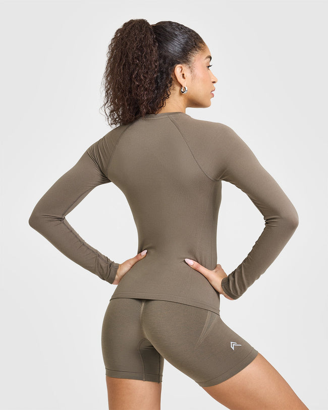 Go To Seamless Fitted Long Sleeve Top Moss Brown