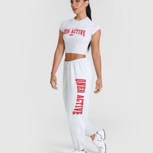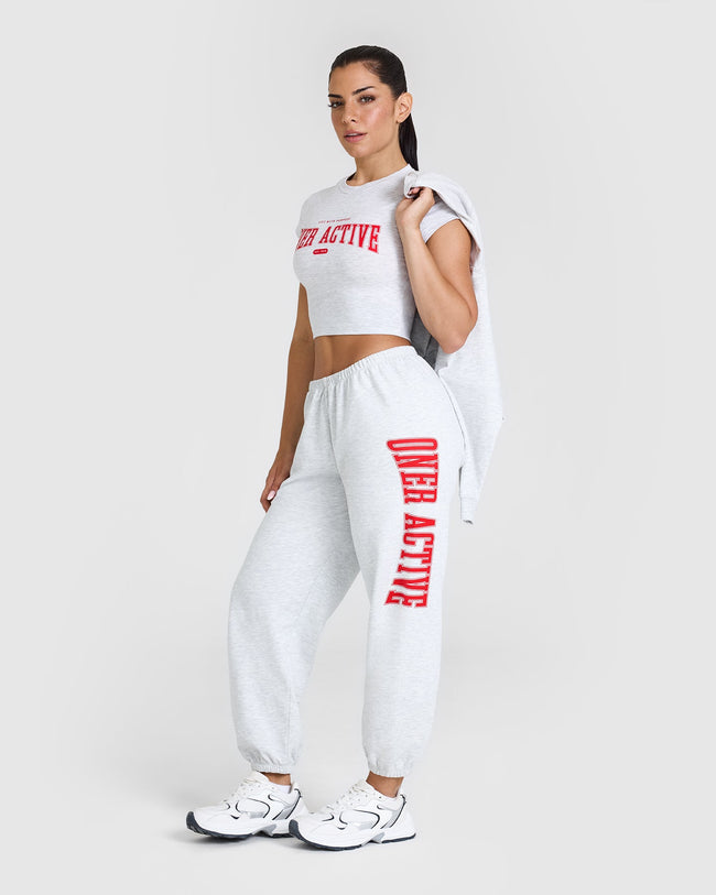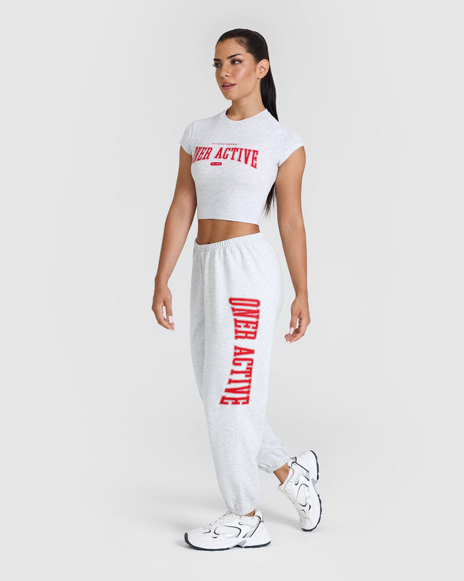Lightweight Joggers with Red Graphic Light Grey Marl