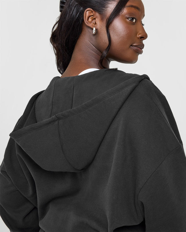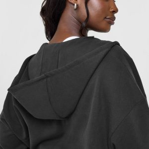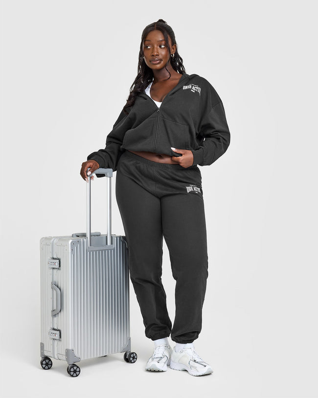 Lightweight Zip Through Hoodie With Athletic Graphic Soft Black