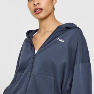 Lightweight Zip Through Hoodie With Oner Logo True Blue