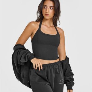 Mellow™ Rib Halter Neck Mid Vest with Built in Bra Shelf Soft Black