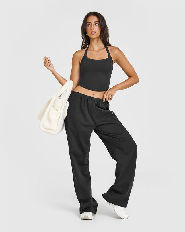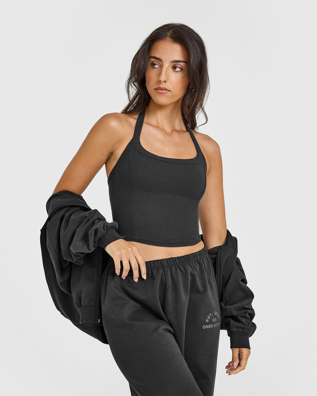 Mellow™ Rib Halter Neck Mid Vest with Built in Bra Shelf Soft Black