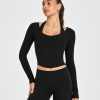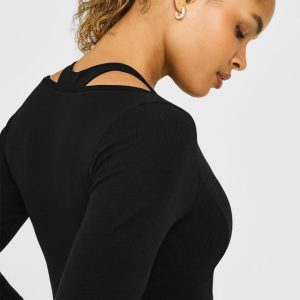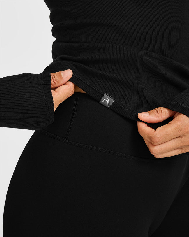 Mellow™ Rib V Neck Long Sleeve Top Black