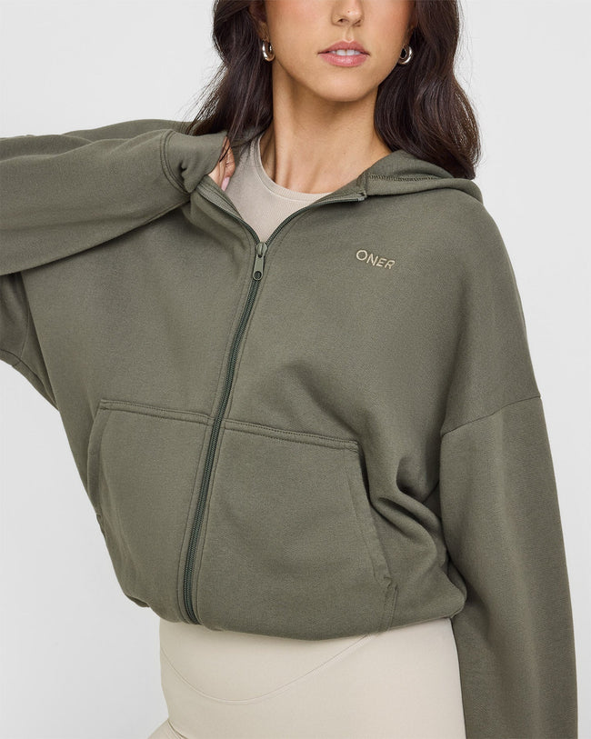 Mid Weight Zip Through Hoodie Alpine Green