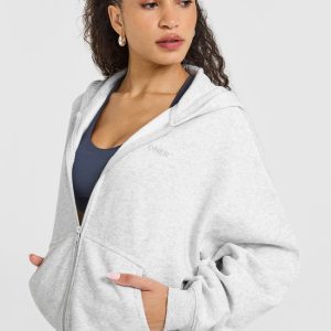 Mid Weight Zip Through Hoodie Light Grey Marl