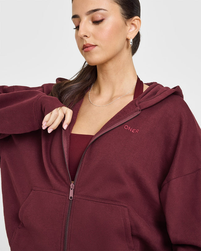 Mid Weight Zip Through Hoodie Rosewood