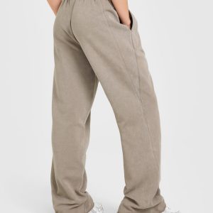 Oversized Piped Woven Straight Leg Track Bottoms Deep Umber Brown